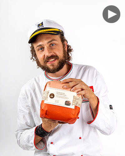 Panettone with fresh candied orange and raisins, flavored with “vino Marsala PDO” and “Terre Siciliane Zibibbo liquoroso PGI”, hand-wrapped.