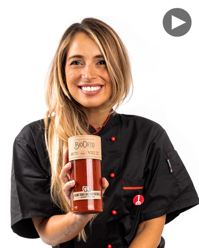 100% Organic Tomato Sauce with Vegetables. This sauce is prepared by slowly cooked chopped onion, carrots, celery and garlic in extra virgin olive oil and then adding the pulp and tomato puree with the 3 organic seasonal vegetables (zucchini, eggplants, peppers). The final result is a fresh and authentic taste of an homemade sauce without preservatives or added sugars.