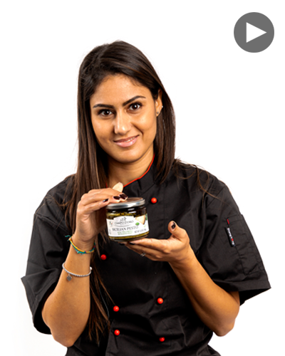 Sicilian pesto made exclusively from basil, parsley, garlic, a pinch of chilli and then the bold addition of Sicilian Pdo pecorino which creates an intensity of flavour and scent.